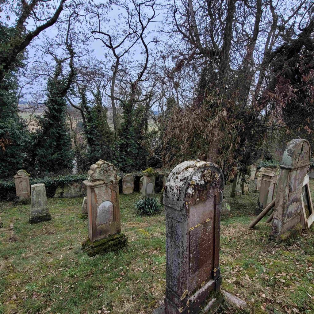 In einem Nachlass zweier Bücher zur Hochberger jüdischen Gemeinde, der Beth Shalom übergeben wurde, fand sich eingelegt die Fotokopie einer alten Fotografie des Hochberger jüdischen Friedhofs. Dieses Foto ist bisher nicht bekannt. Es ist in keinem Buch zu Hochberg enthalten, auch im Stadtarchiv findet sich kein Exemplar. Als die bisher ältesten Fotos des jüdischen Friedhofs gelten zwei aus dem Jahr 1932, die die Israelitische Religionsgemeinschaft in Württemberg in ihrem Buch „Jüdische Gotteshäuser und Friedhöfe in Württemberg“ (Frankfurt/M. 1932, S.86f.) veröffentlicht hat. Auf diesen beiden Fotos ist der untere und mittlere Teil des Friedhofs zu sehen. Der heutige Hangwald ist nicht vorhanden. Man hatte einen freien Blick auf den Neckar Richtung Heilbronn. Dieser freie Blick liegt auch bei dem neuen alten Foto vor. Das weist auf einen ähnlichen Zeithorizont hin. Interessant ist das Bild vor allem, weil es den oberen Teil des Friedhofs mit den jüngsten Gräbern abbildet, der in genanntem Buch nicht berücksichtigt ist. Stellt man sich heute exakt an die Stelle des damaligen Fotografen (zweites Bild) wird es spannend: Das jüngste Grab auf dem Friedhof von Karoline Falk im Vordergrund, die am 28.10.1925 starb, ist auf dem alten Bild noch nicht vorhanden. Da im Judentum der Grabstein gewöhnlich am ersten Jahrtag des Todes gesetzt wird, muss das alte Foto somit vor den 28.10.1926 datiert werden und ist damit das älteste Foto des Friedhofs, das wir im Moment haben. Das Foto bestätigt auch eine Vermutung von Ulrike Sill, die die Dokumentation „Der Jüdische Friedhof in Remseck-Hochberg“ 2003 veröffentlichte. Sill vermutet, dass es bei der Wiederinstandsetzung nach der Friedhofsschändung in der NS-Zeit im Januar 1946 nicht gelang, alle den Neckarhang hinuntergestürzten Grabsteine an den richtigen Platz zurückzustellen. In zwei Fällen konnte sie mit den Fotos von 1932 nachweisen, dass die Steine nicht an der richtigen Stelle stehen. Beim neu entdeckten Foto fällt in der Mitte sofort der Grabstein der „doppelten Fanni“ mit den zwei eingelassenen Marmortafeln ins Auge. Dieses Grab von Schwiegermutter (gestorben 4.11.1896) und Schwiegertochter Fanni Fellheimer (gestorben 12.5.1897) ist eines von zwei Doppelgräbern auf dem Friedhof. Er steht heute links vom Grabstein der Fanny Falk (Stiefmutter von Adolf Falk, gestorben 12.5.1901) außerhalb des Bildausschnittes. Auf dem alten Foto steht er rechts von Fanny Falks Stein. Am ursprünglichen Platz der „doppelten Fanni“ steht heute der Grabstein von Madele Anschel (gestorben 13.3.1879), der sich ursprünglich an einer ganz anderen Stelle befunden haben muss. Auch an der Friedhofsmauer sieht man, dass der Grabstein von Gustav Kusiel (gestorben 30.8.1896) heute anderthalb Meter weiter links steht. Auf dem alten Foto wird er vom Stein der Fanny Falk im Vordergrund zum großen Teil abgedeckt. Fanny Falks Stein wurde später mutwillig beschädigt. Das auf dem alten Foto über der eingelassenen Marmortafel gut erkennbare gemeißelte Blumengebinde wurde weggeschlagen. Die übrigen Grabsteine sind standortidentisch. Das Grab von Benjamin Löw (gestorben 23.9.1891) im Hintergrund war früher offensichtlich mit einem kleinen Zaun umgrenzt, der heute nicht mehr vorhanden ist. Insgesamt bestätigt das neu entdeckte Foto die These von Ulrike Sill, dass es 1946 nicht mehr vollständig gelang, den Friedhof im Originalzustand wiederherzustellen, da kein Mitglied der jüdischen Gemeinde befragt werden konnte.